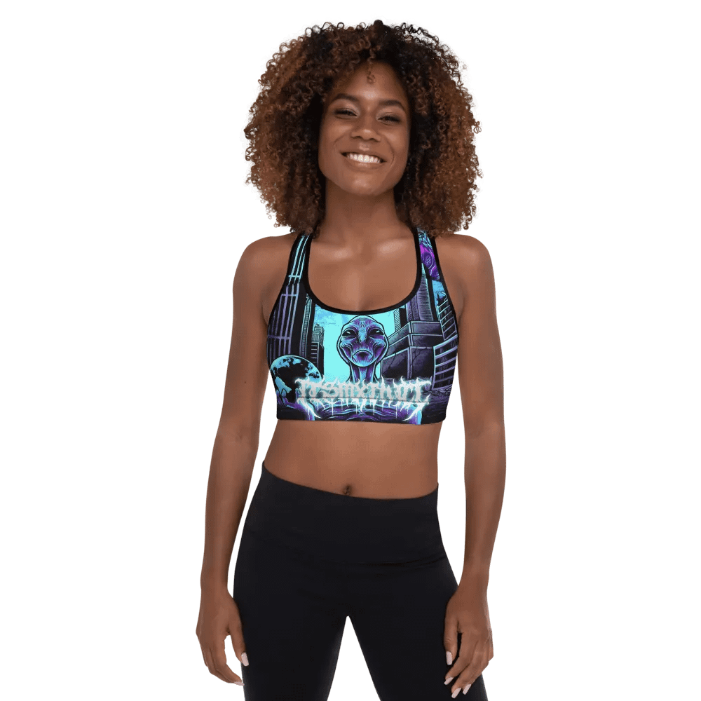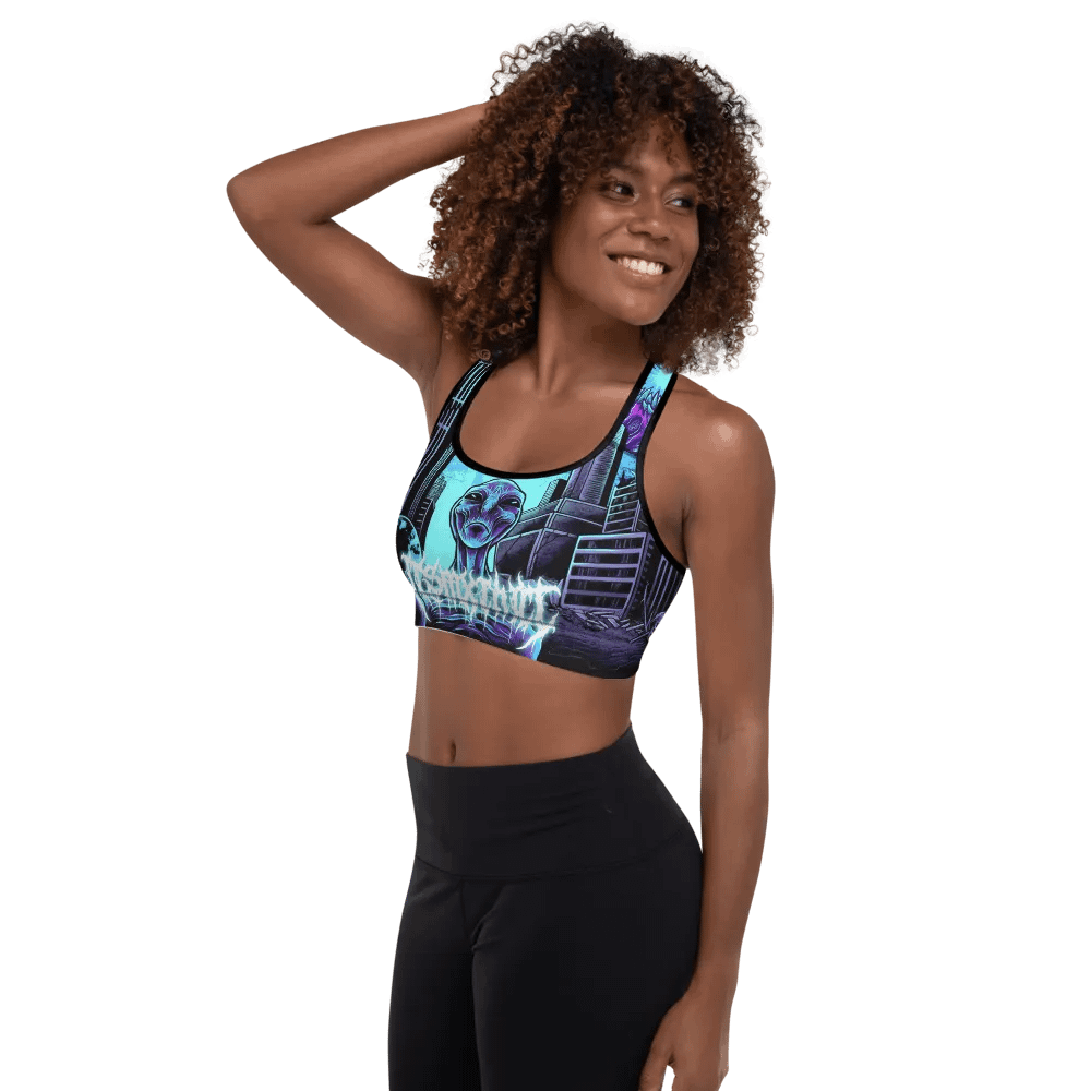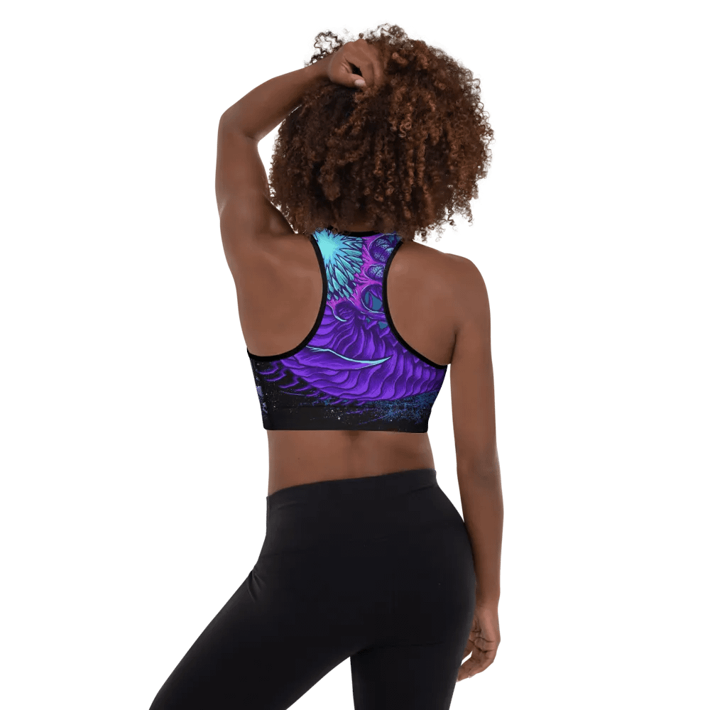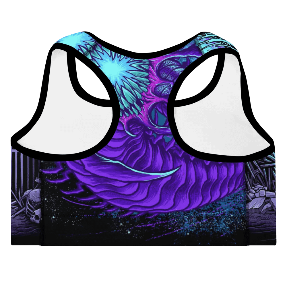 Sublicolor all-over print padded sports bra with the leviathan art.