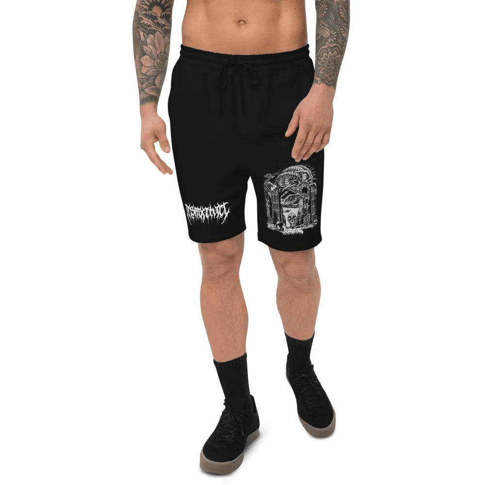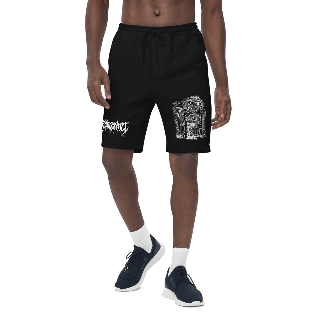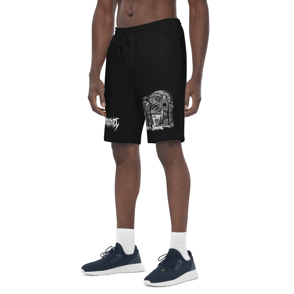 Independent Trading Co. fleece shorts with the leviathan artwork printed.